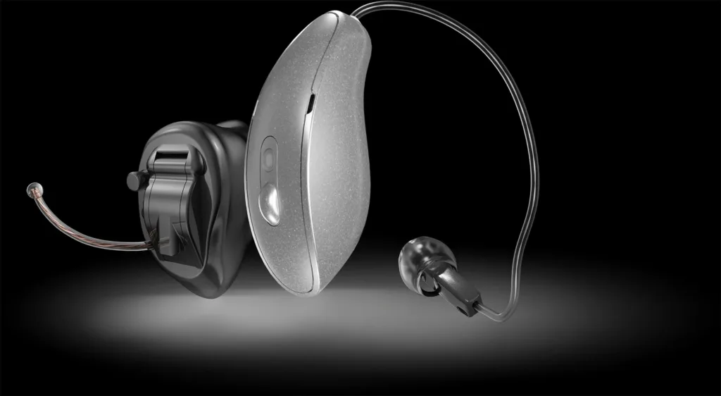 Omega AI hearing aids connect seamlessly with StarLink Edge wireless hearing aid accessories.